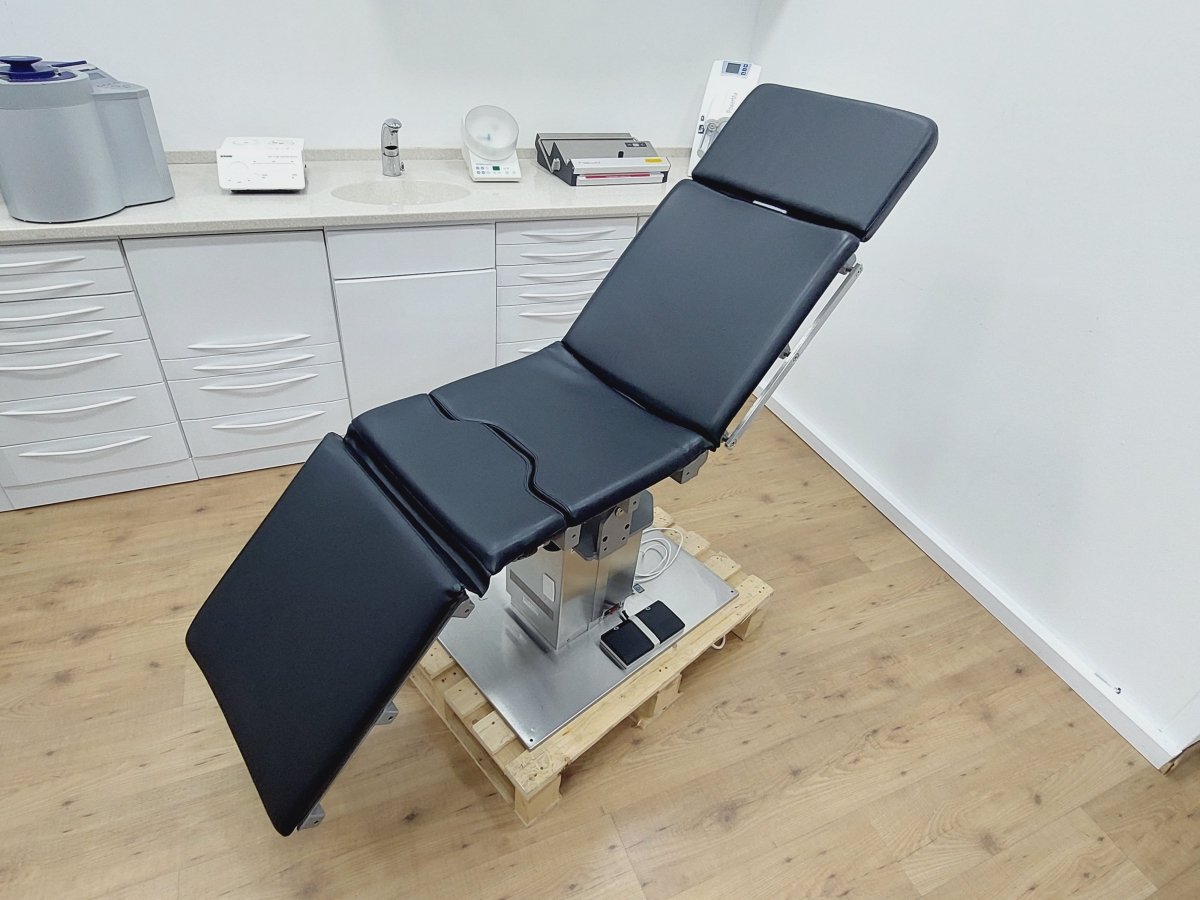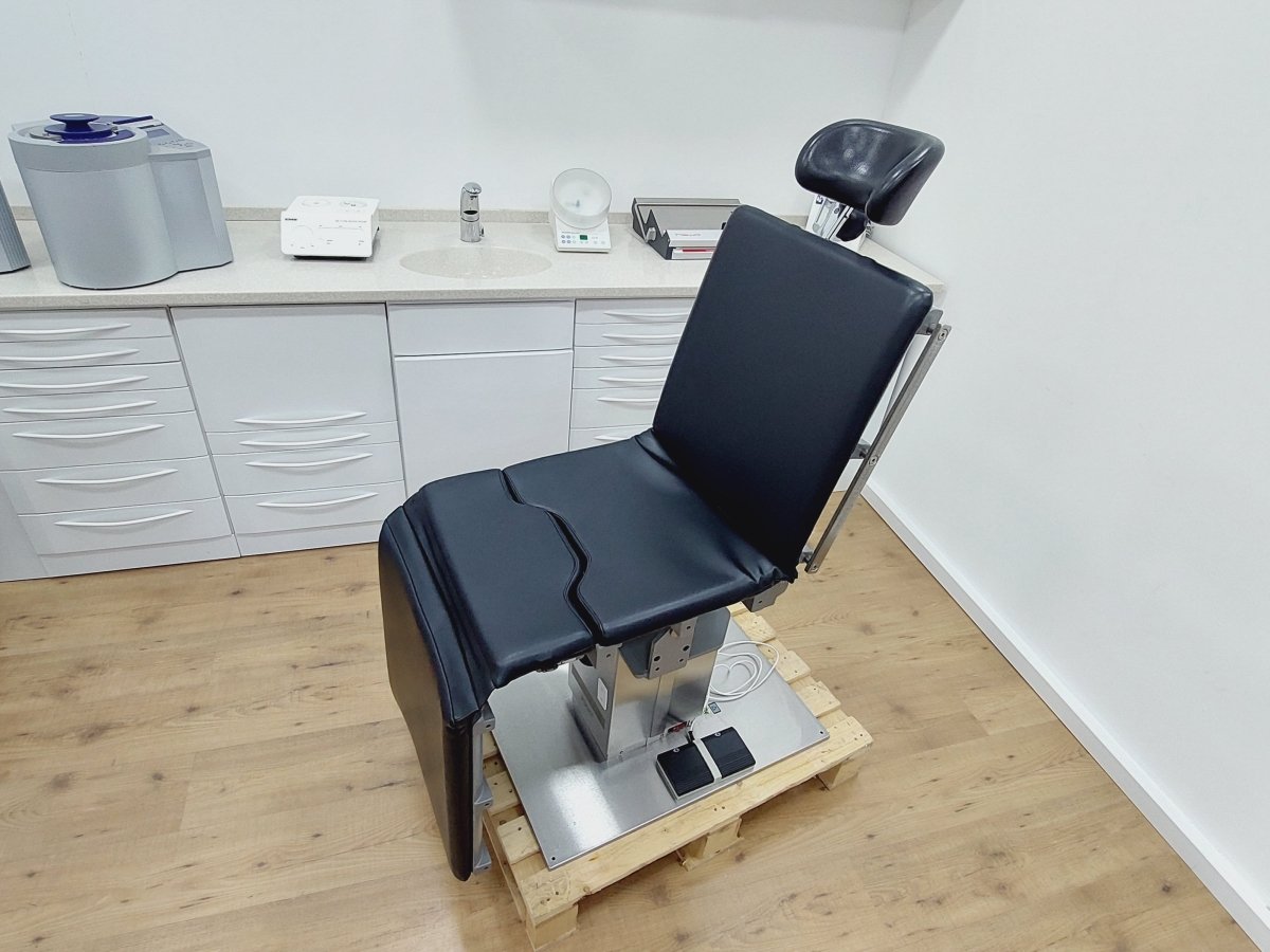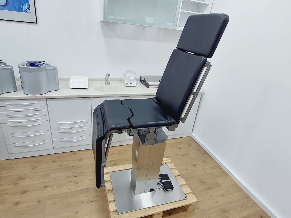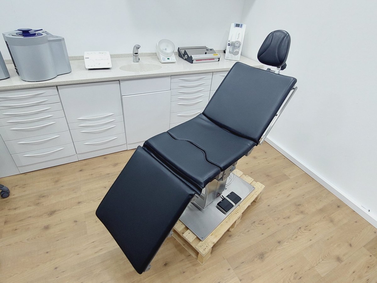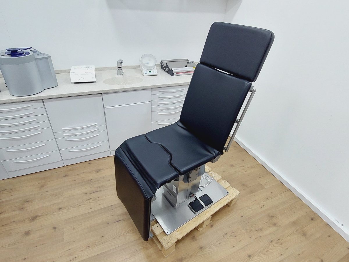 Kompakter Universal-Behandlungsstuhl bzw. Untersuchungstisch, der z.B. für Kieferchirurgie, HNO, Ophthalmologie, Gynäkologie, Dermatologie, Urologie, Kleinchirurgie usw. einsetzbar ist