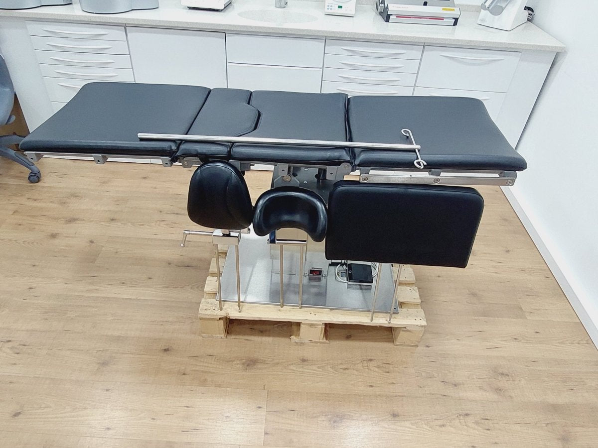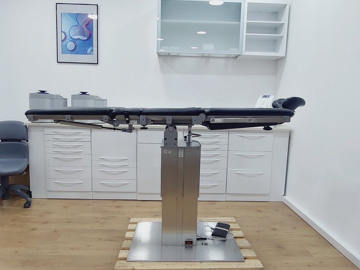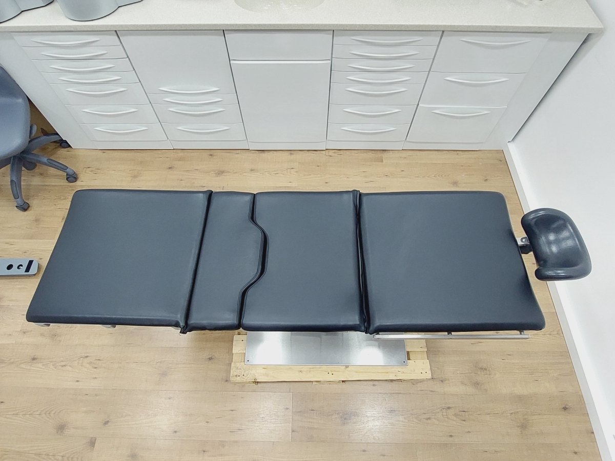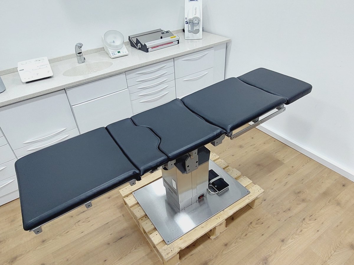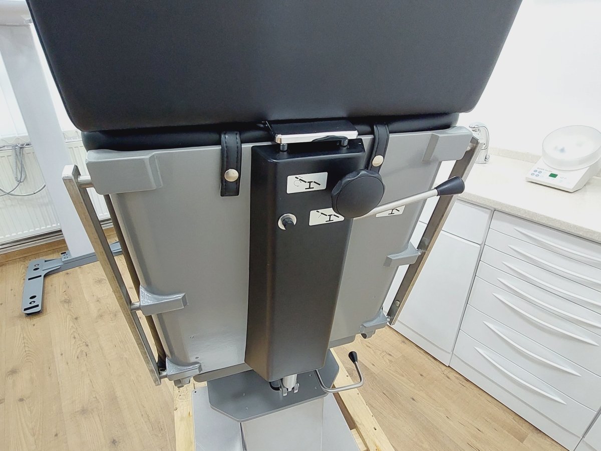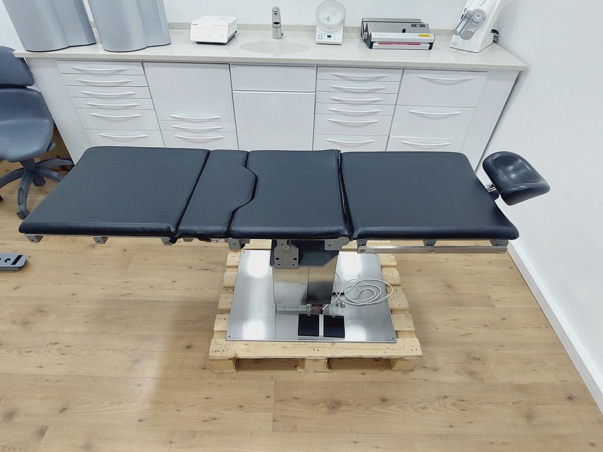 Kompakter Universal-Behandlungsstuhl bzw. Untersuchungstisch, der z.B. für Kieferchirurgie, HNO, Ophthalmologie, Gynäkologie, Dermatologie, Urologie, Kleinchirurgie usw. einsetzbar ist